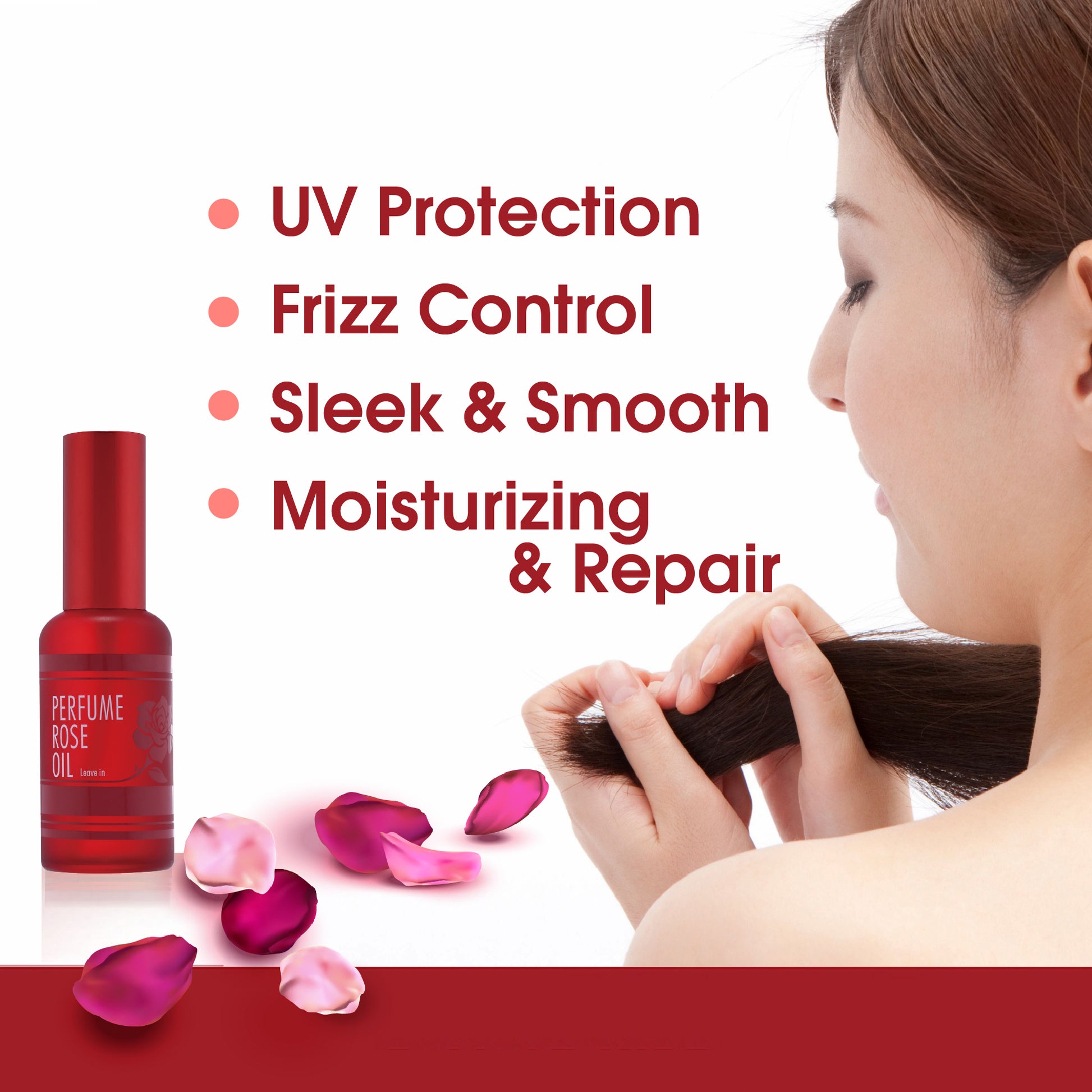 We present our Perfume Rose Oil, formulated with Damask Rose essential oils. It does Not only have an aromatic fragrance that will make you fall in love with, but it will also help protect hair against the heat damage, reduce frizz and give shine and softness.